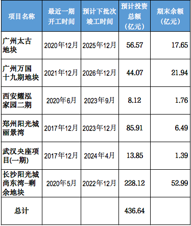 从2023年起,阳光城的高毛利率项目,只剩下表7中这6个项目,预计总投资额为436.64亿元。平摊到2023-2026四年中,每年平均额为109.16亿元。