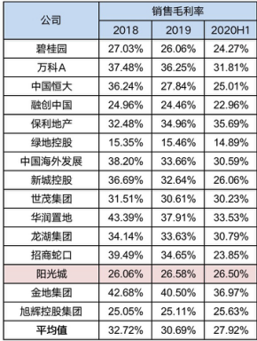 我们以阳光城2020年上半年的毛利率进行剖析。