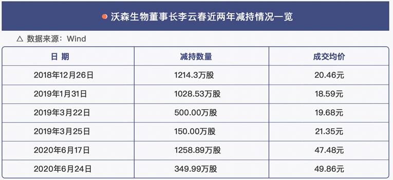 据《财经》记者了解,沃森生物股权结构分散,前5大股东持股比例均不超过5%。2018年12月至2020年6月,公司董事长李云春则已经通过大宗交易方式分6次减持公司股份,合计已套现约13.42亿元。