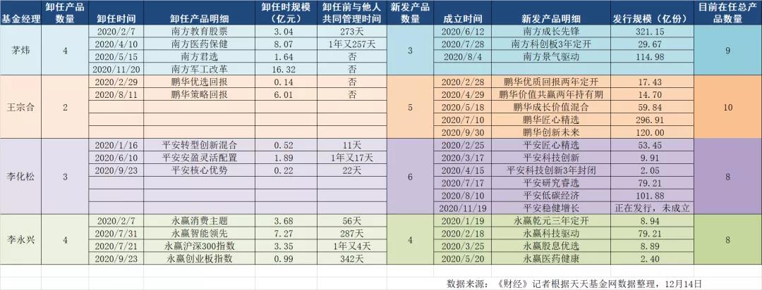 《财经》记者整理部分基金经理“卸老发新”情况如下: