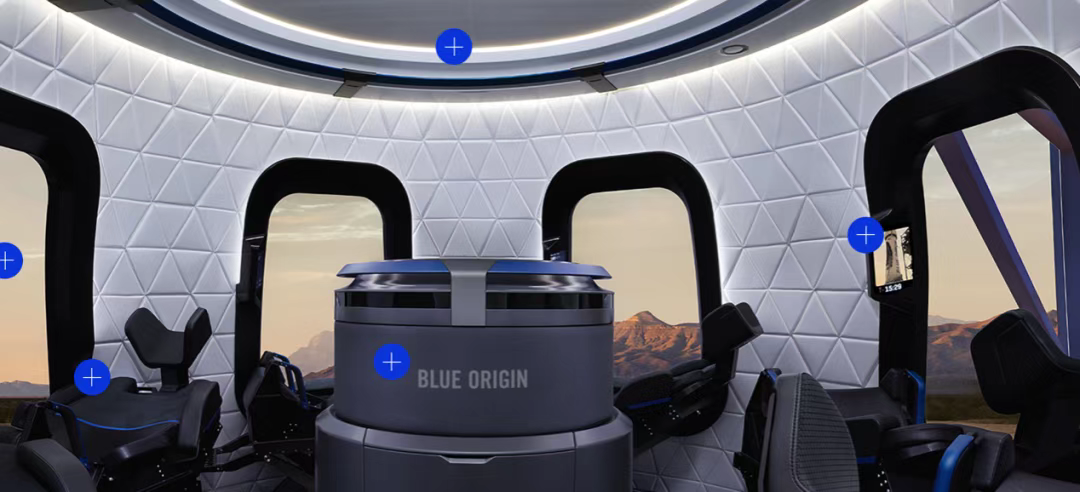 据蓝色起源官方介绍,新谢泼德的太空舱有6个座位,当飞行器穿越卡门线后,乘客们可以解开安全带,享受零重力漂浮约3分钟,他们可以透过107厘米*71厘米的舷窗欣赏地球的景色。