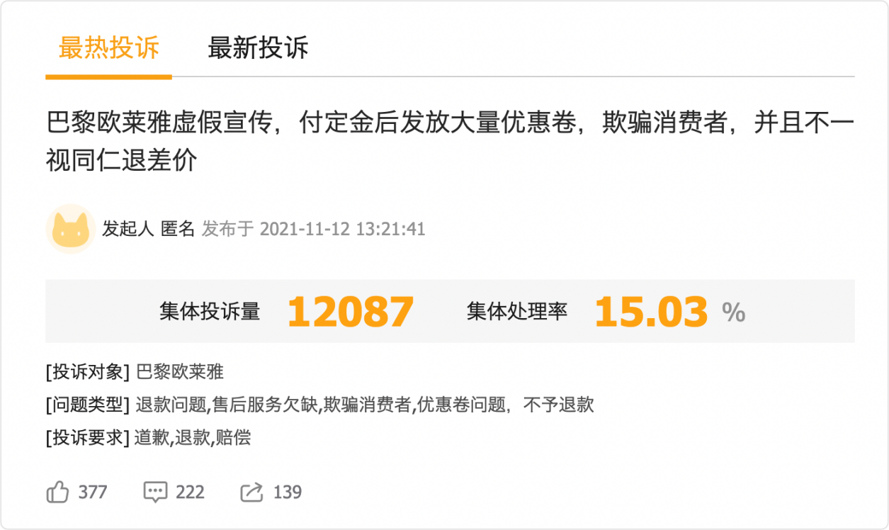 1、《冲上热搜!欧莱雅遭近2000消费者集体投诉…》