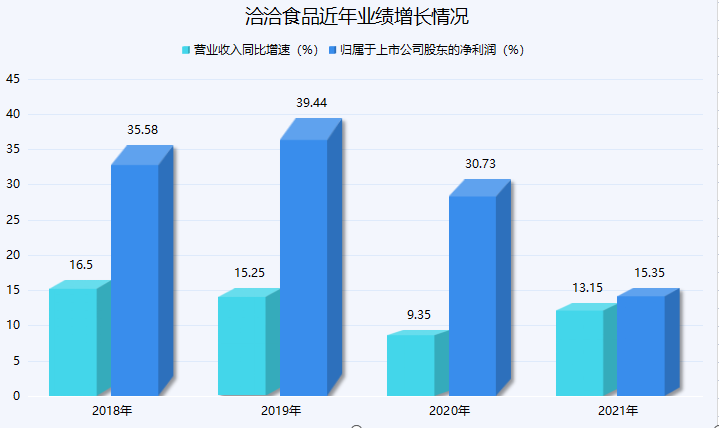 虽然2021年洽洽食品净利润仍保持双位数增长,但也创下2018年以来新低。