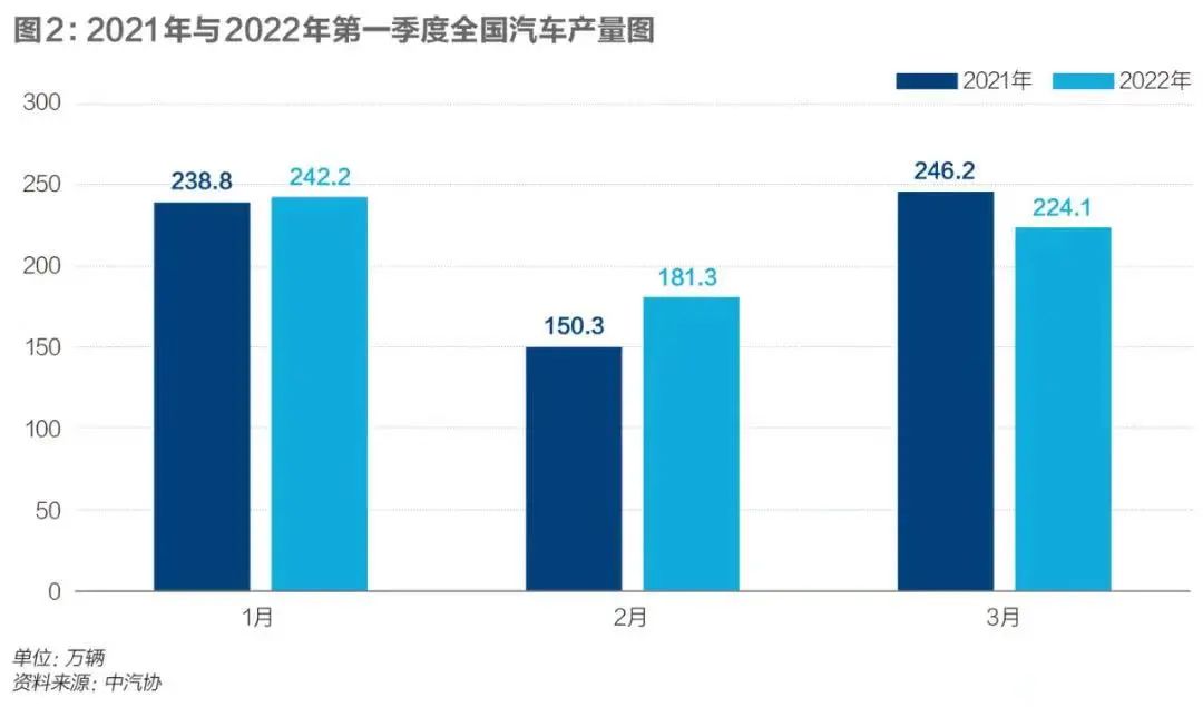 乘联会数据显示,主要厂商3月第三周、第四周的日均市场零售量分别为3.5万辆、3.9万辆,同比下降近30%。中汽协数据显示,3月乘用车产销188.1万辆和186.4万辆,同比下降0.1%和0.6%,今年一季度汽车产销分别完成648.4万辆和650.9万辆,同比增长2.0%和0.2%。