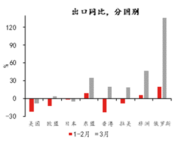 图表 1 3月出口大幅反弹,对东盟、非洲、俄罗斯等出口增速加快