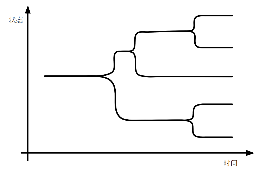 图1 分岔路径。自由意志的问题在于,我们无法在岔口选择方向