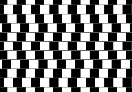 图 3咖啡馆墙错觉。图中的水平线是平行的