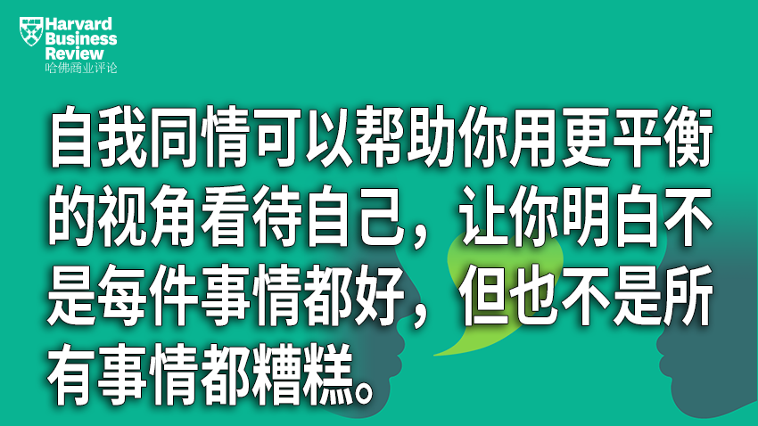 自我同情通常需要首先了解自己的负面行为模式。我自己会在焦虑的时候拼命工作,然后把其他人卷进来,用自己焦虑之下的高标准要求别人,把别人逼疯,这种模式对我的职场人际关系造成了影响。了解自己的负面行为模式,自我同情可以帮助你直面自己的问题,在下次意识到自己陷入这种模式的时候有意识地做出更好的选择。这种情况下,富有同情心的自我对话可以是这样的:吹毛求疵是因为我想把握控制权,有控制感能让我平静,所以我的想法是可以理解的。我需要考虑全局,从战略角度思考,这样会在总体上让我感觉更好。