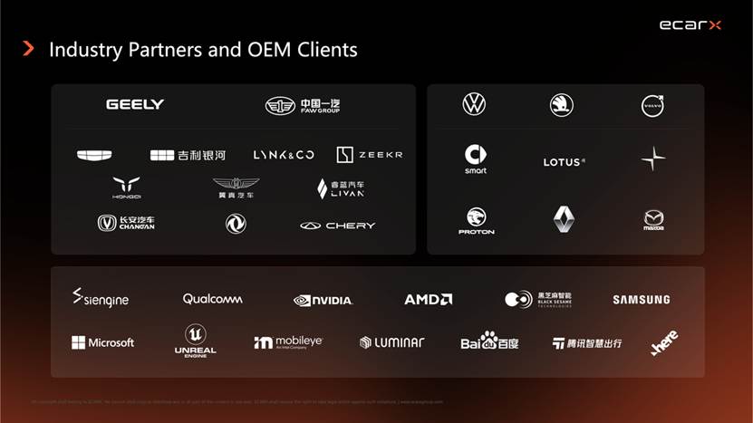 亿咖通科技的客户多元化结构,正由国内头部向全球主流与豪华品牌延展,项目质量与粘性都在提升。目前,亿咖通科技已经与8家全球汽车品牌共同推进14个在研项目,且已取得其中4个项目的定点,这类订单通常跨车型、跨周期,按量产节奏结算,构成未来3–5年的现金流主线,并显著降低单一客户与单一车型的波动风险。