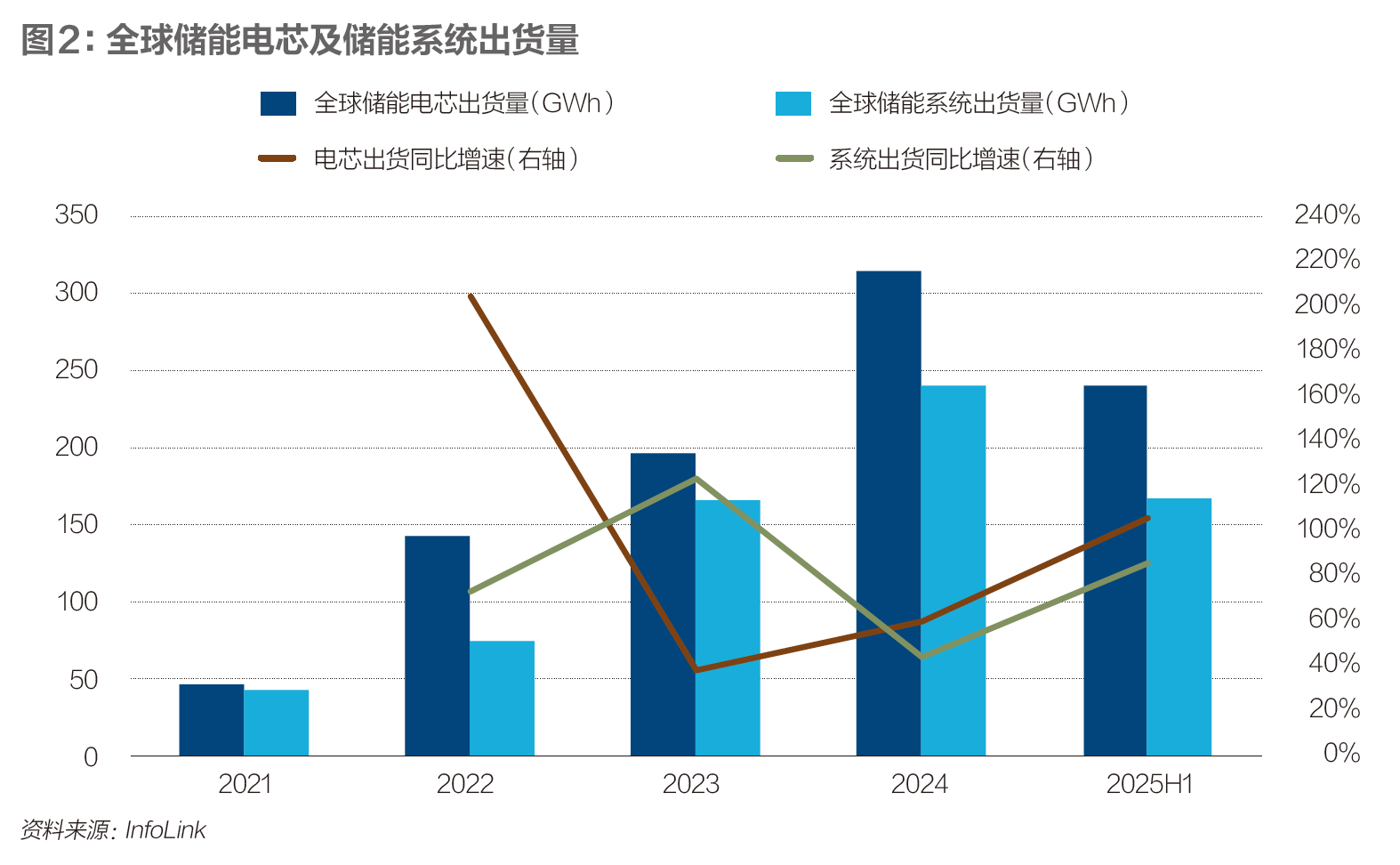 2025年初时,在前一年高基数、全球主流市场的政策不确定性和贸易摩擦风险的共同作用下,市场普遍预计储能市场增速会放缓。