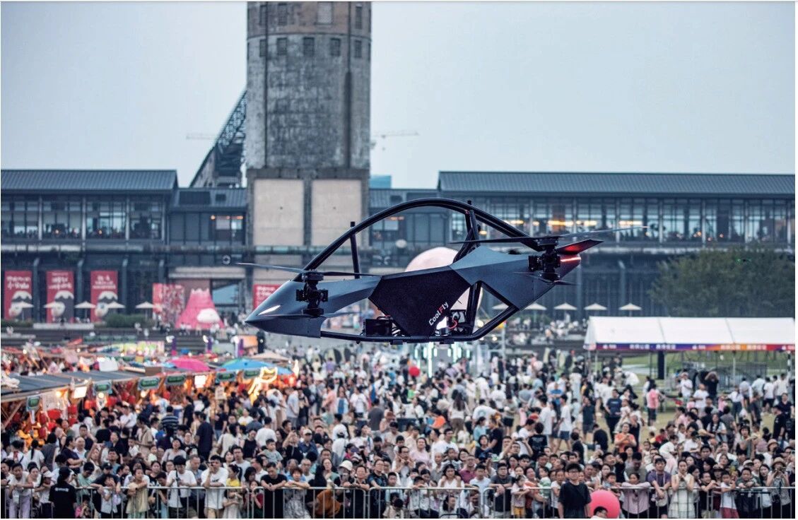 2025年10月7日,游人在浙江杭州大运河杭钢公园观看飞行器飞行表演。图/中新