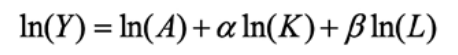 通常假设生产函数为常规模弹性,即α+β=1,那么生产函数可以变形为: