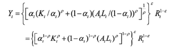 我们的动态一般均衡模型主要包括企业部门、居民部门和政府部门。参考Aghion(2017)的做法,我们将含有人工智能发展的生产函数设定为: