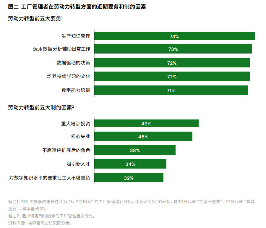 制造业在人才断层问题上正面临双重挑战:一方面,资深技术工人退休潮来临;另一方面,受人口结构变迁及年轻群体职业偏好变化的影响,新生代劳动力的补充持续乏力,导致劳动力供给急剧萎缩。鉴于此,工厂管理者需要将知识管理、数据分析以及实现数据驱动的决策列为重中之重。这些行动目前已成为AI驱动的变革的关键,其对于实现2040年愿景亦颇为重要。