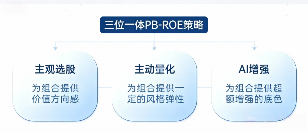 主观选股层面,鉴于A股市场对PB-ROE风格标的的关注度较低,团队通过研判价值趋势,有较大概率获取超额收益;基本面量化层面,借助多元化风格子策略进行均衡配置,进一步强化组合表现;AI增强层面,先筛选出符合PB-ROE风格的基础股票池,再运用非线性方法开展深度优化,提升组合选股精度。