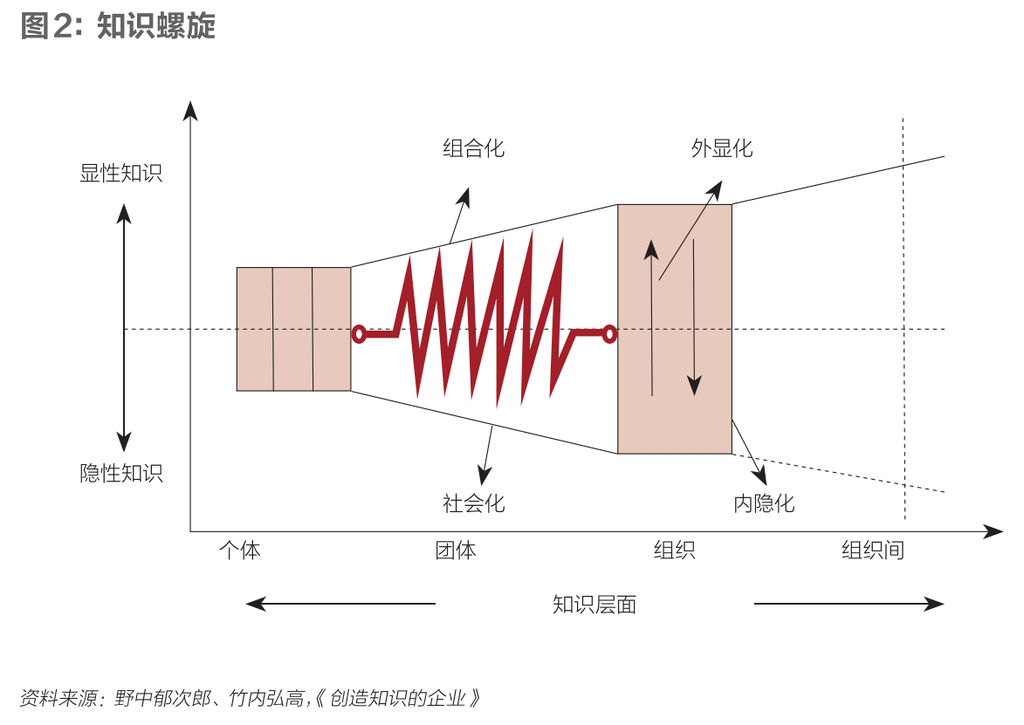 智能制造的深刻变革不仅发生在生产端,更体现在组织能力和知识体系的重塑上。传统模式依赖工程师的隐性经验和直觉,知识难以沉淀和复用,决策依赖经验判断,创新多为偶发事件。而智能制造通过数据采集、信息处理、模型构建和流程再设计,实现知识的显性化、软件化和模型化,使其成为可循环、可复用的组织资产。这带来三重变化,其一是知识不再依附于个体,而在组织内循环复制;其二是决策从经验判断转向模型驱动,更快、更稳;其三是组织从执行型向学习型、知识型、创新型演化,创新成为持续能力而非偶发事件。正如《创造知识的企业》中“知识螺旋”理论所示,这种能力体系的形成,使制造企业具备知识规模化生产能力,也奠定了智能制造深层竞争力的核心基础。