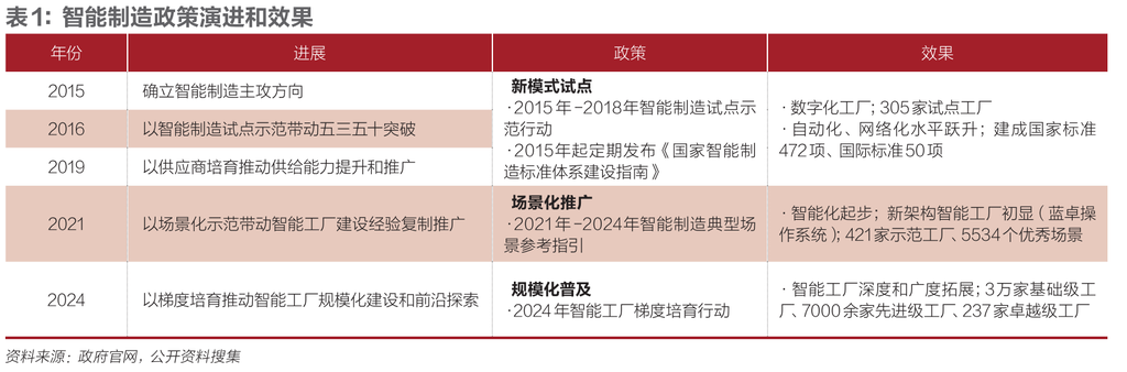 “十三五”以来,我国制造业面临供应链韧性不足、生产效率瓶颈凸显、创新体系难以形成闭环、市场需求多样化与个性化加速等诸多结构性挑战。国家因此将智能制造确立为产业升级的主攻方向,并形成连续性与系统性的政策脉络,从“十三五”的新模式试点,到“十四五”早期的场景化推广,再到当前的规模化普及。