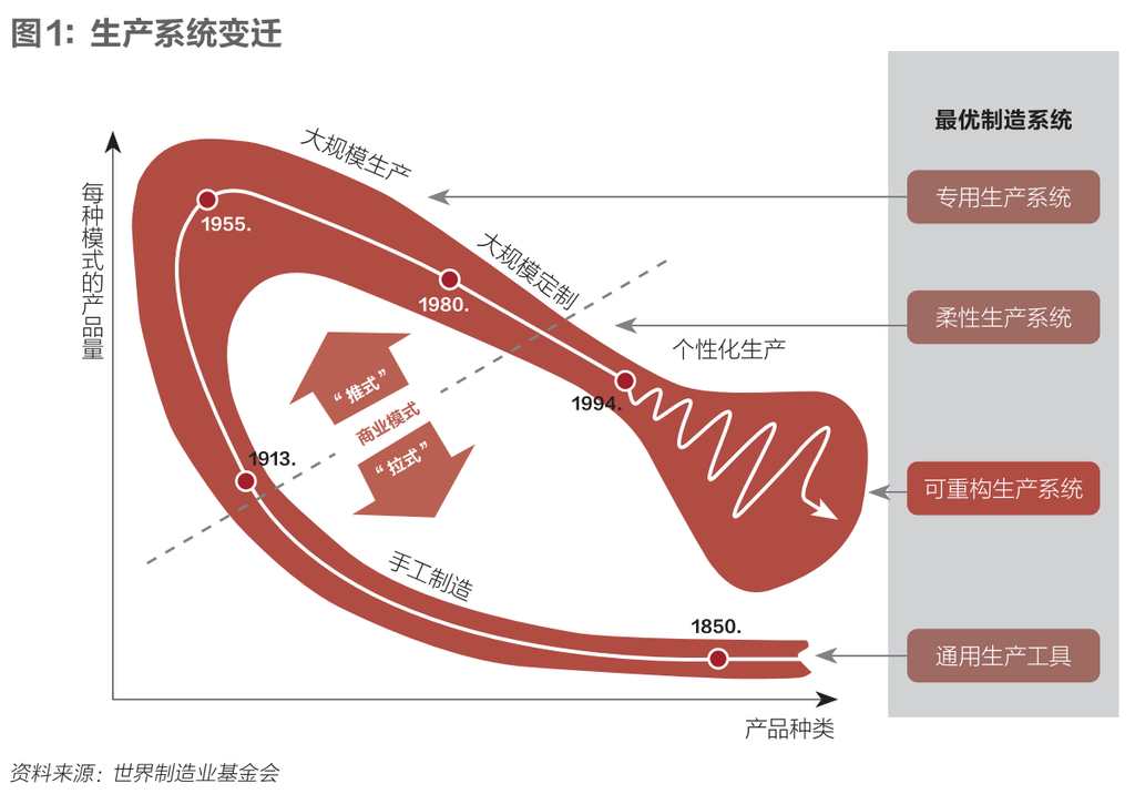 创新的根本源泉在于全要素生产率的持续提升。中国制造业长期依靠人口红利和投资红利驱动增长,而智能制造带来了以数据智能为核心的生产新范式。2024年我国全员劳动生产率相较2020年提高了近50%,部分中高技术领域全要素生产率与发达国家的差距不断缩小。这不仅源于自动化设备的引入,更在于系统级协同与实时优化能力的构建,使创新进入可持续循环。《谁来主宰日本经济的未来》指出,日本全要素生产率下降的原因在于,仅将数字化当作工具,而非体系性创新动力。同时,制造业从大规模生产走向大规模定制,柔性生产系统曾是解决品类增加、批量下降的主要手段。但随着消费者需求加速分化、产品迭代加快,传统柔性系统已难以兼顾效率、成本与适应性。可重构生产系统因此成为智能制造时代最关键的结构性创新——生产资源可以根据任务变化自动重组,生产流程可以在不停车、不重配的情况下快速切换。