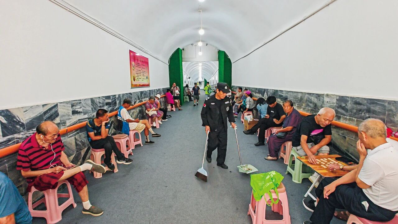 7月下旬,武汉多日持续高温,一些市民和游客躲进武昌区黄鹤楼脚下的蛇山防空洞内避暑 休闲。图/IC