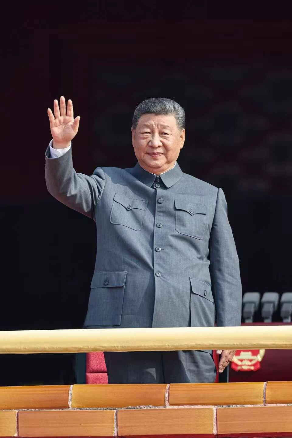 9月3日,纪念中国人民抗日战争暨世界反法西斯战争胜利80周年大会在北京天安门广场隆重举行。中共中央总书记、国家主席、中央军委主席习近平发表重要讲话并检阅受阅部队。习近平在天安门城楼上挥手致意。图/新华