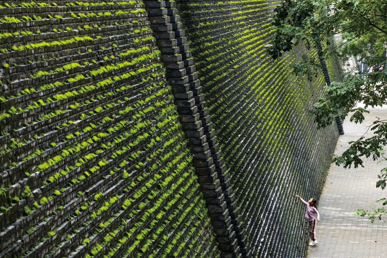 10月中旬,西安城墙南段长出的植物。西安城墙始建于隋唐、扩建于明代,是中国现存历史 最悠久、保存最完整的古代城垣建筑。连绵秋雨过后,苔藓等植物为西安城墙披上了一层绿 色的外衣,吸引市民和游人驻足观看、拍照。图/新华