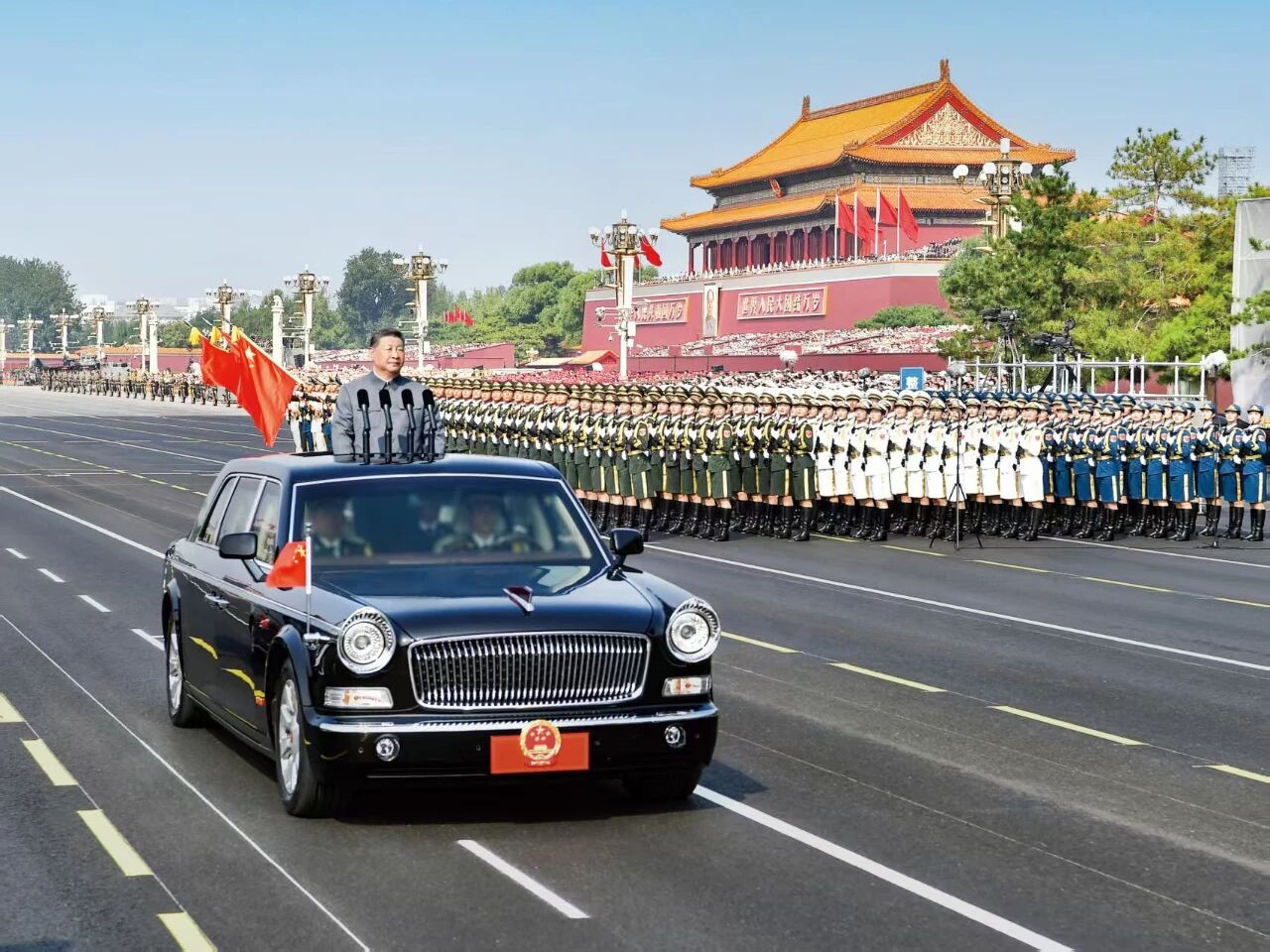 2025年9月3日,纪念中国人民抗日战争暨世界反法西斯战争胜利80周年大会在北京天安门广场隆重举行。中共中央总书记、国家主席、中央军委主席习近平检阅受阅部队。图/新华