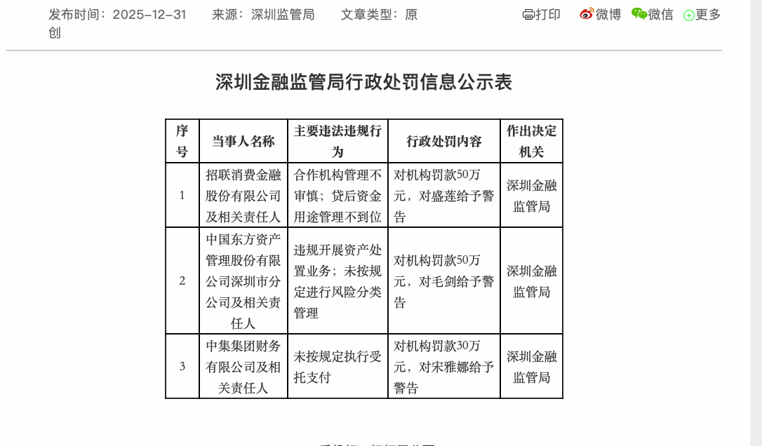 2025年12月31日,招联金融因“合作机构管理不审慎;贷后资金用途管理不到位”被深圳金融监管局罚款50万元。