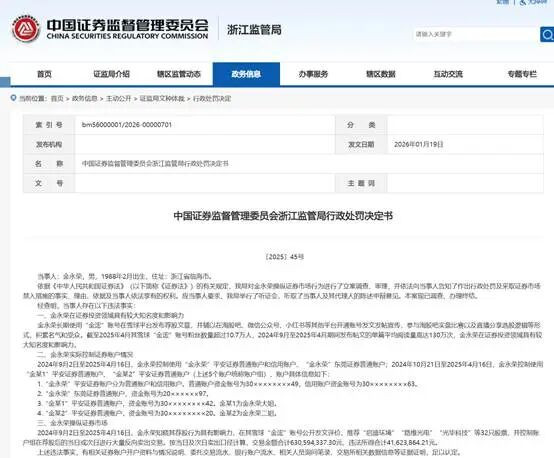 1月19日,中国证监会浙江监管局对雪球大V金永荣操纵证券市场行为作出行政处罚,开出高额罚单和3年市场禁入。