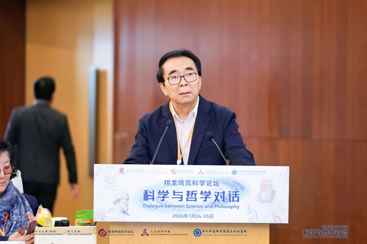 2026年1月24日-25日,由香港中文大学(深圳)理工学院主办的“翔龙鸣凤科学论坛:科学与哲学对话”在香港中文大学(深圳)举行。中国科学院原院长白春礼院士以“架构科学家与哲学家的思想桥梁,为人类科技事业贡献新智慧”为题进行主旨演讲。