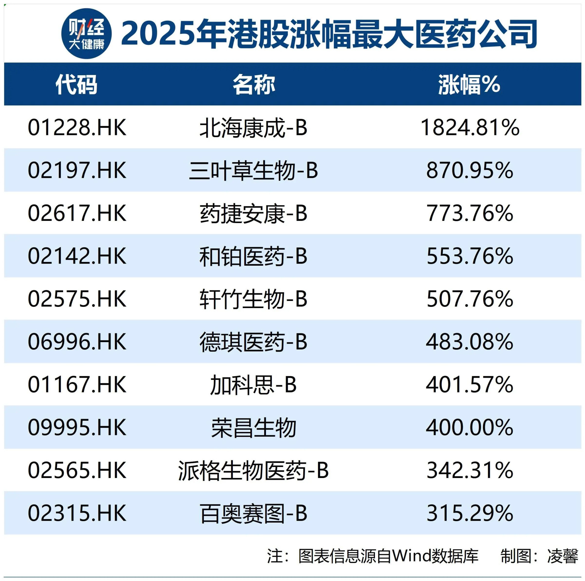 中国医药股领涨全球的2025年,涨幅最高的个股有哪些?