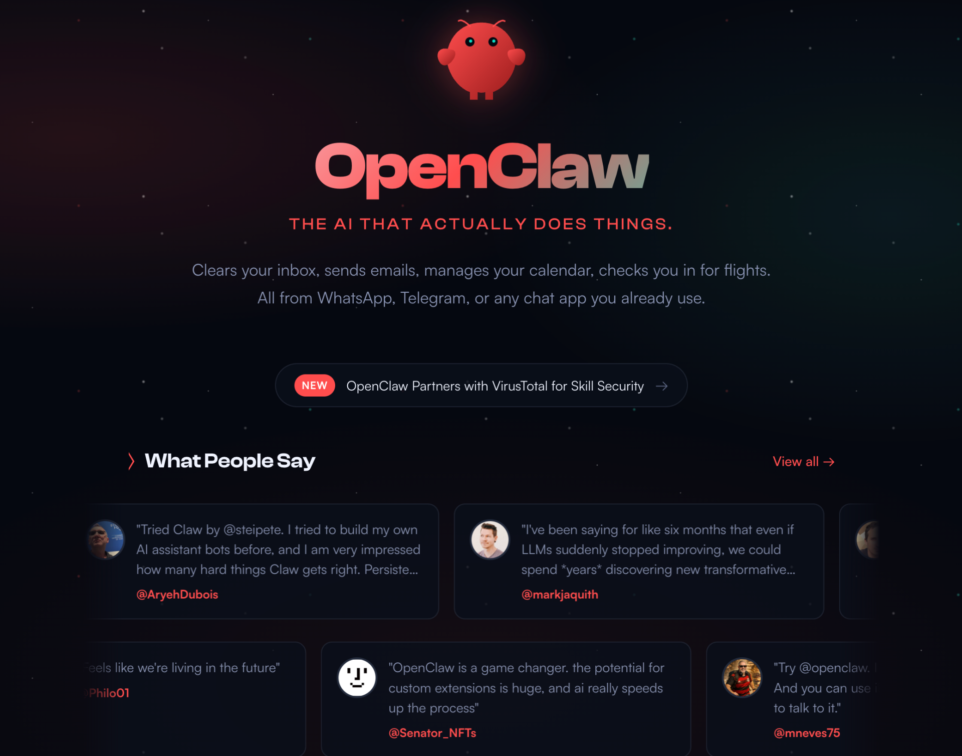 OpenClaw 2025年11月诞生,也被称为“龙虾”。它的logo是只龙虾,OpenClaw创始人彼得·斯坦伯格(Peter Steinberger)希望它能像龙虾一样脱壳蜕皮,长成更大的生物。