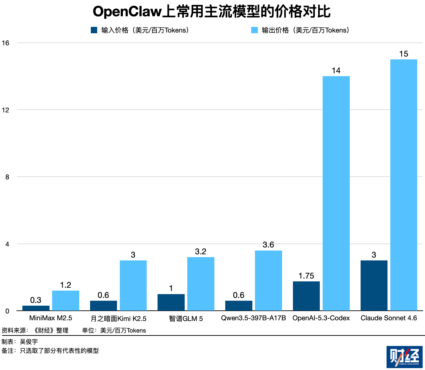 一位中国云厂商架构师对《财经》表示,OpenClaw是拉动这几家国产模型Tokens消耗量迅速增长的一个重要因素。这些国产模型迅速被开发者采用,核心原因是,它们的Token价格远低于OpenAI和Anthropic的旗舰模型,但性能差距不算大。因此,在需要长时间运行Agent任务时,越来越多开发者愿意选择这些成本更低的模型。