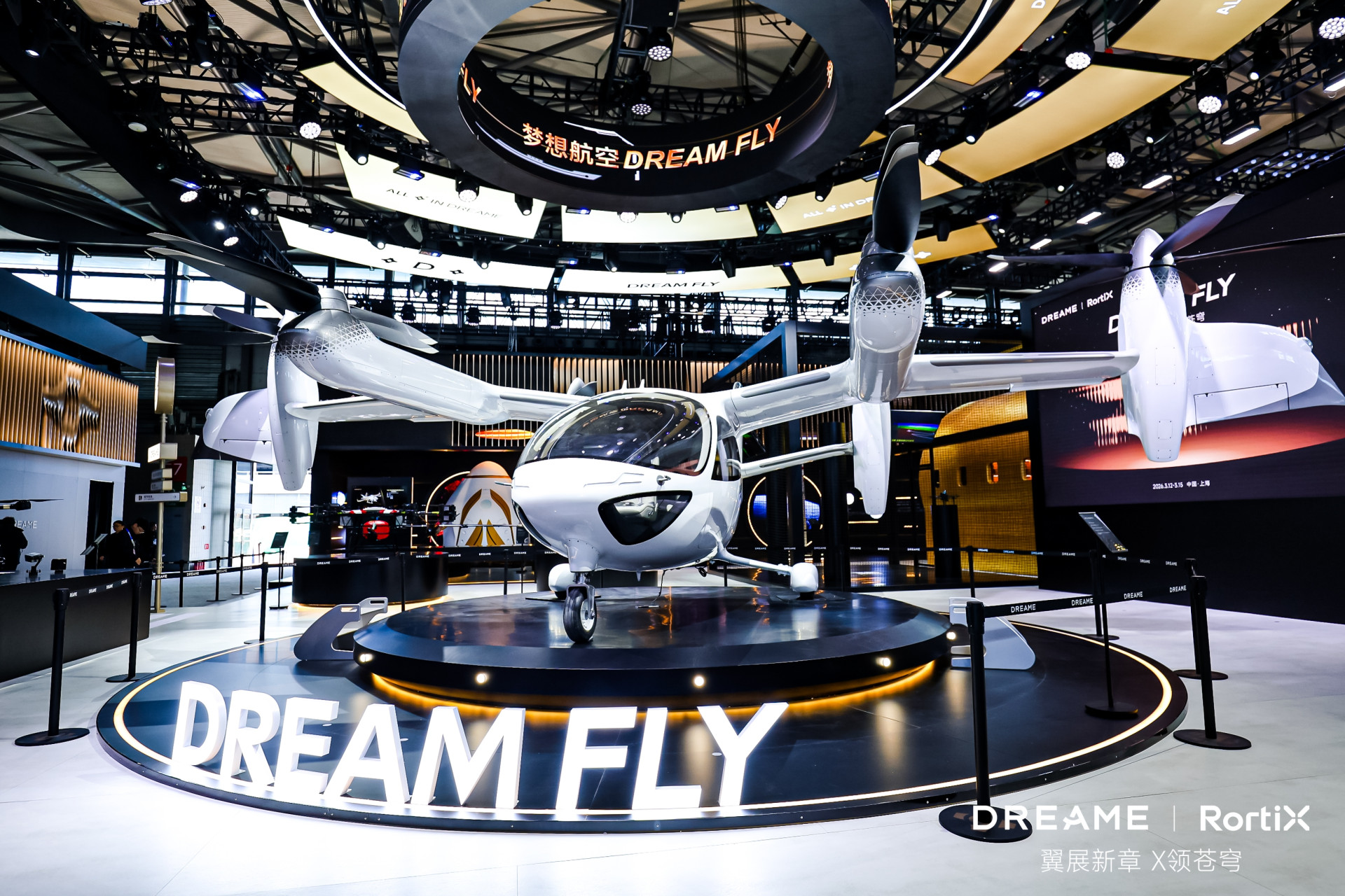 另一引人注目的变化来自跨界玩家。在上海新国际博览中心E7追觅馆,追觅科技旗下RortiX旋翼纪元将全场景“AI+具身智能”飞行生态在全球首次完整呈现,集结1款eVTOL + 1款明星产品【RortiX生态AI+飞行机器人】 + 5款RX家族产品。