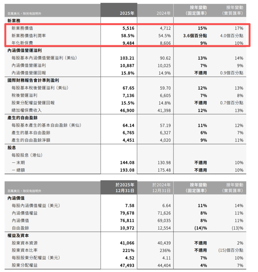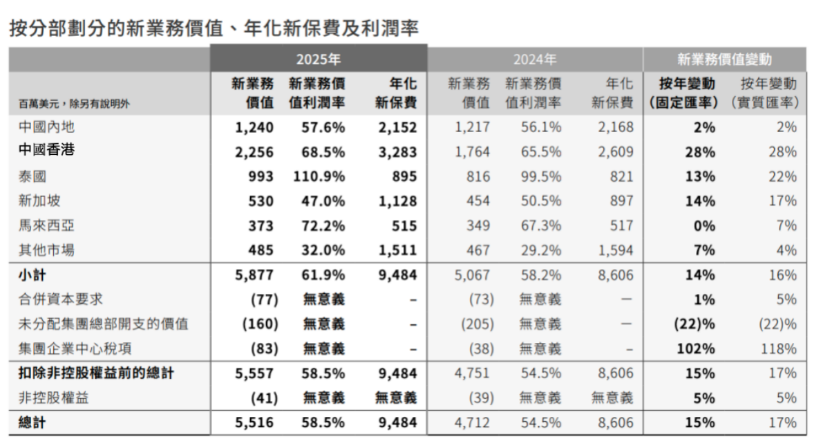 图2:友邦保险新业务价值数据 来源:友邦保险2025年业绩报告