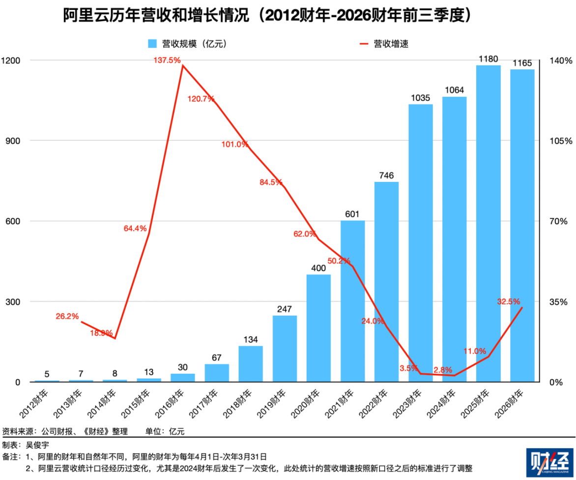 窄口径(严格按吴泳铭的说法,只统计阿里云和AI业务),这个计算方式基数小,要求的增长速度更快、更激进。