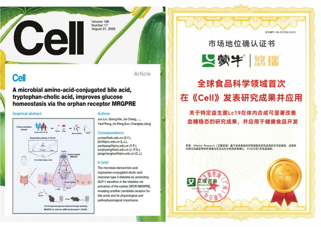 科技进化:破解“卡脖子”难题,贡献“中国方案”。蒙牛在科技创新上的投入正步入收获期。自主研发的新款HMOs(母乳低聚糖)再次获批,“含有DHA藻油的调制乳及其生产方法”发明专利荣获第二十五届中国专利银奖,明星益生菌菌株LC19、Hi188的研究成果登上国际顶刊并实现转化,相关加工工艺获得国际认证。这些成果还有力证明了,以蒙牛为代表的中国乳业,在高精尖领域开始从“跟随”走向“并行”,甚至在某些细分领域寻求引领,为行业向上突破技术天花板提供了可能。