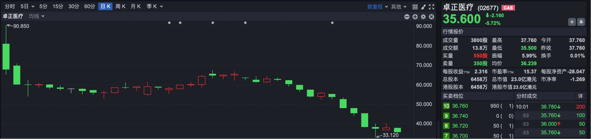 3.卓正医疗(HK02677):截至4月1日收盘,卓正医疗破发36.96%。