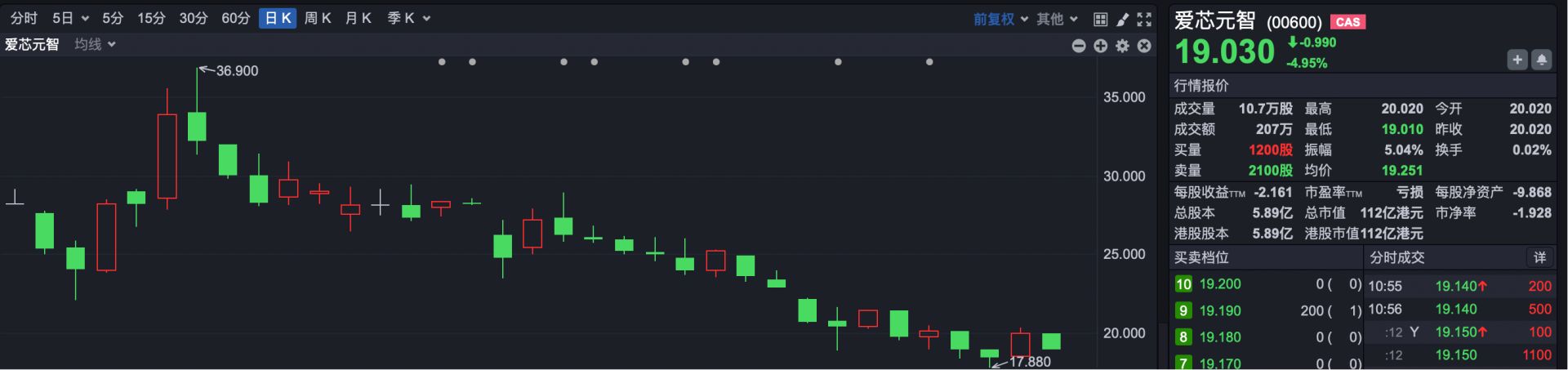 5.爱芯元智(HK00600):截至3月31日,爱芯元智报收18.5港元,破发幅度达34.4%。