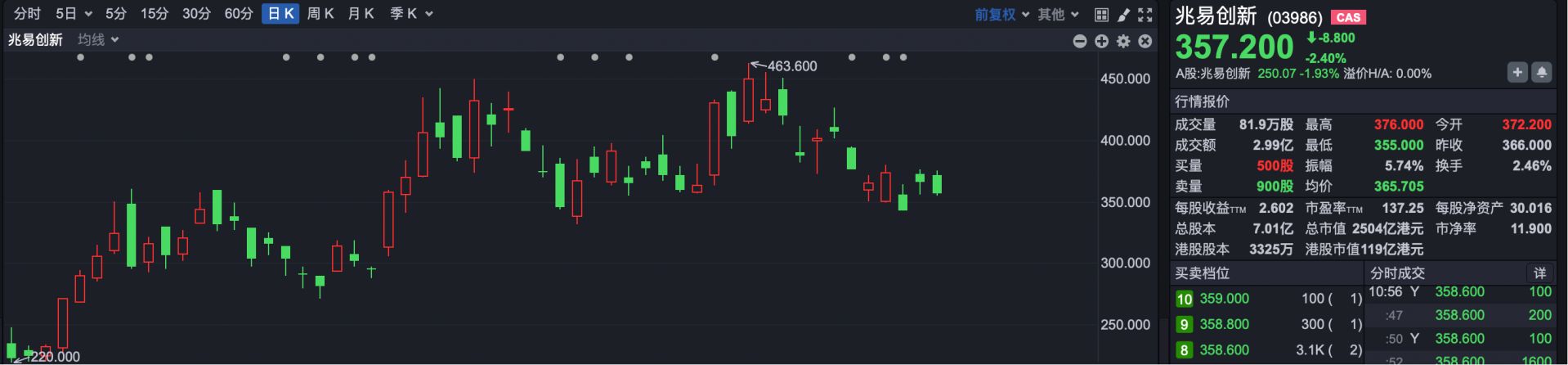 3.兆易创新(HK03986):截至4月1日,兆易创新报收于366港元,较发行价162港元累计上涨125.9%。