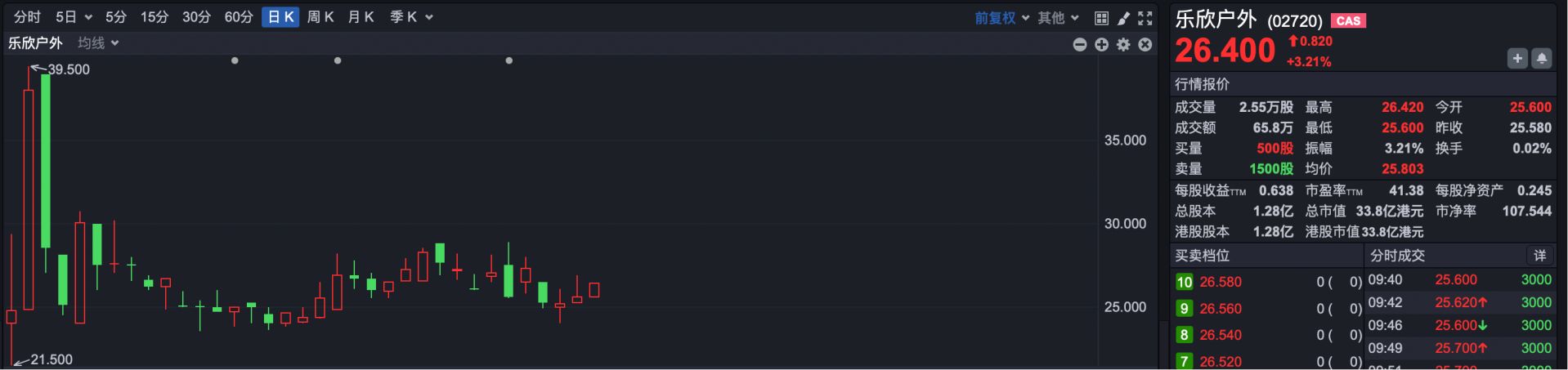 4.乐欣户外(HK02720):截至4月1日,乐欣户外报收于25.58港元,较12.25港元的发行价累计上涨108.8%。
