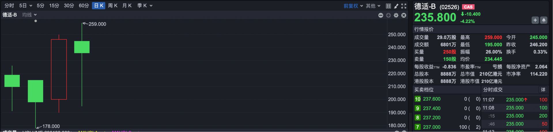 5.德适-B(HK02526):公司于3月30日在港交所上市,截至4月1日,德适-B报收于246.2港元,较发行价99港元累计上涨148.7%。