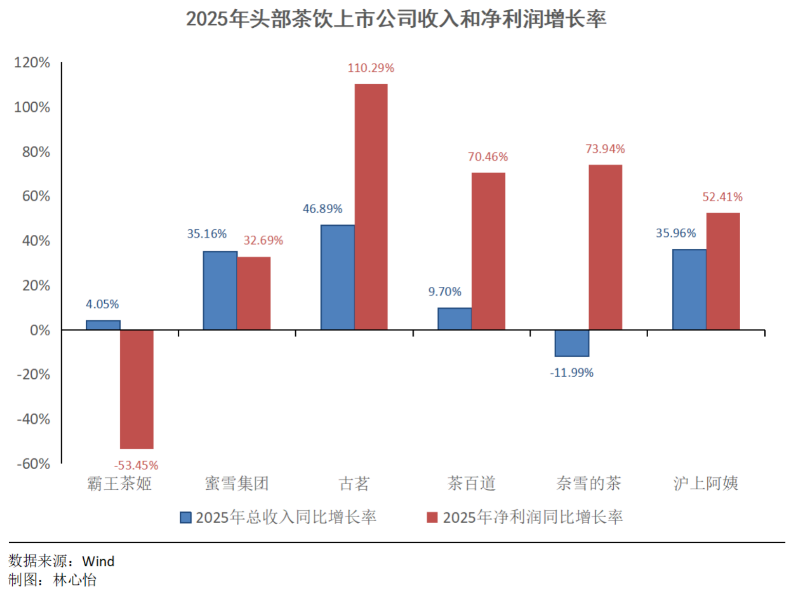 在六家上市茶饮公司中,霸王茶姬收入增速排名倒数第二。霸王茶姬2025年总收入同比增长4.05%,而蜜雪集团增长35.16%,古茗增长46.89%,茶百道增长9.70%,沪上阿姨增长35.96%,奈雪的茶下滑11.99%。
