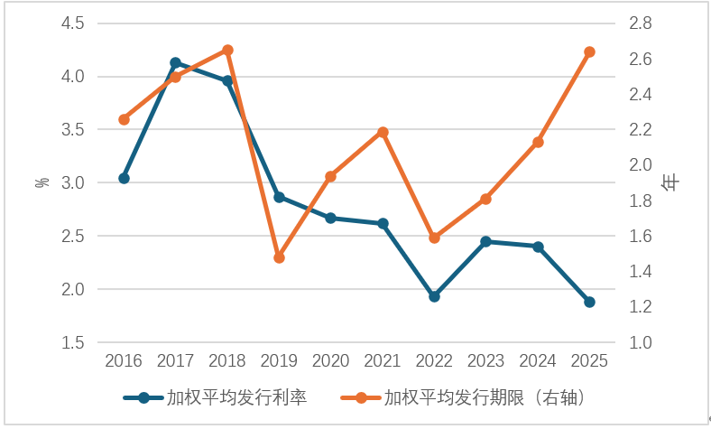 近年来点心债市场发展之所以异军突起,最重要的原因在于点心债的发展成本相较于同级别美元债券具有明显优势。之所以点心债从2022年起进入快速发展阶段,一个根本原因就在于2022年中美长期利差发生了反转。在2022年中期之前,中国长期利率显著高于美国长期利率,之后两者的利差发生了反转。尤其是从2023年下半年至今,10年期中国国债收益率明显低于美国同期利率,使得发行人更愿意通过人民币来举债。如图4所示,2022年至2025年,点心债的加权平均发债利率均低于2.5%,且2022年与2025年均低于2.0%,这一发债成本无疑显著低于相同信用级别公司发行美元债的成本。事实上,2022年至今,除点心债之外,熊猫债、明珠债、中国香港人民币贷款市场等均获得长足发展,原因均与人民币融资成本显著低于美元有关。