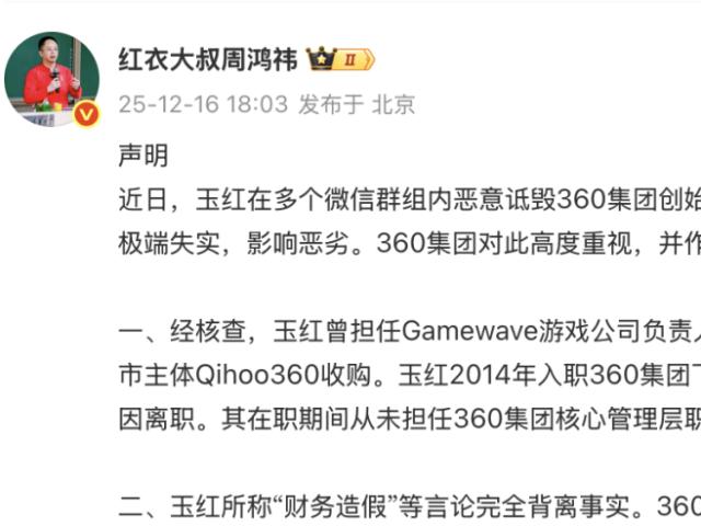 周鸿祎发布声明,此前被前高管指控“做假账几十亿”