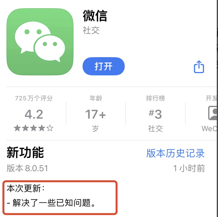 【微信iOS系统更新最新版本8.0.51】今日下午,微信iOS系统更新,最新版本为8.0.51,更新信息显示,“修复了一些已知问题”。(财联社“科创板日报”)